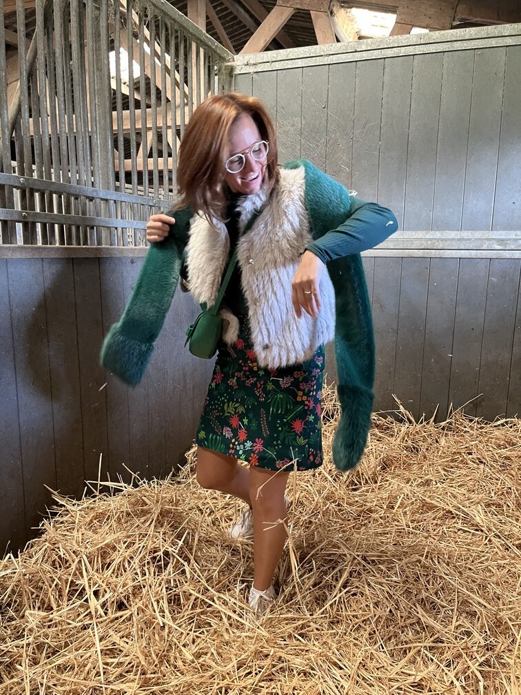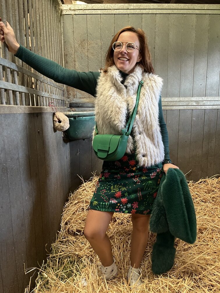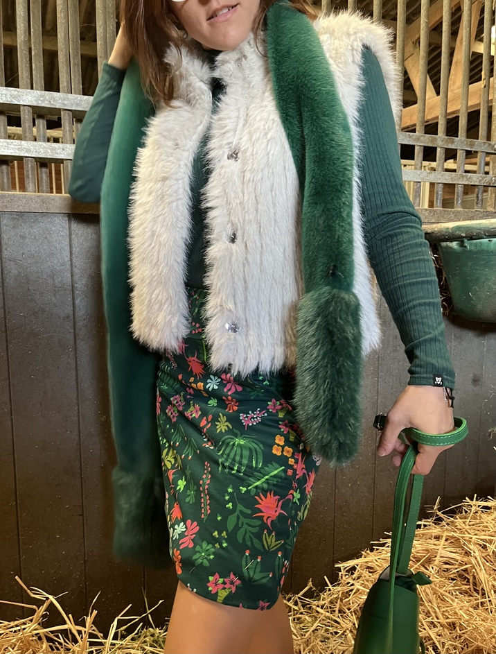 Ensemble jupe imprimée et haut uni en jersey stretch, pour un confort sans pareil ! un gilet doudou pour parfaire la tenue et vous voici fin prête pour affronter l'hiver en beauté!